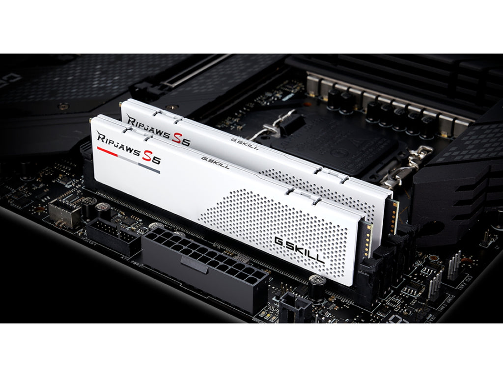 Ripjaws S5シリーズのシンプルなデザインは、クラシックなレーシングストライプとグリルからインスピレーションを受けており、ユーザーごとの幅広いPC構築にマッチするマットブラックとマットホワイトの2カラーをラインナップしています。